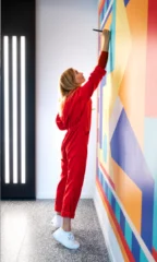 Parcours artistique saisissant, composé de quatre fresques murales en acrylique (420 cm x 220 cm) peintes in situ, et de quatre éléments miroirs Dibonds. Ces œuvres se retrouvent dans les espaces des 1er, 2e, 5e et 7e étages, insufflant une énergie vibrante au bâtiment.